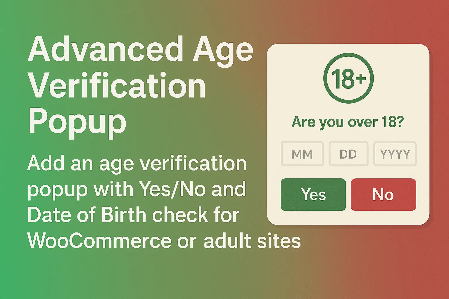Add an age verification popup with Yes/No and Date of Birth check for WooCommerce or….